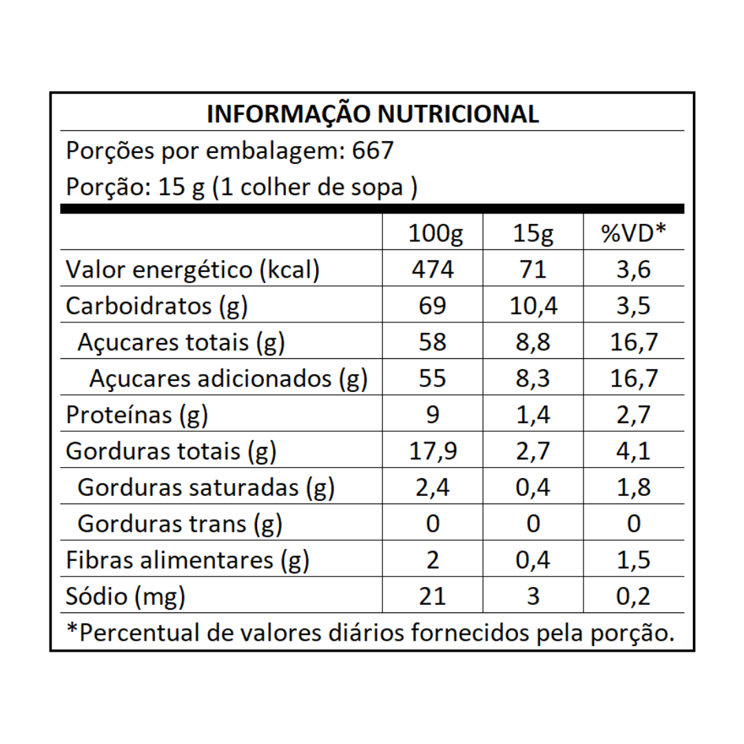 *Percentual de valores diários fornecidos pela porção de 15g.