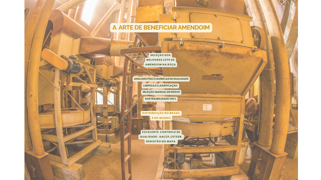 Fundada em 2016 pelo mariliense Edoardo de Cerqueira Cesar Neto, nossa indústria está localizada em Arco-íris, região de Tupã, uma das maiores produtoras de amendoim do Brasil. Desde o início, a empresa se especializou no mercado internacional, consolidando-se como referência no setor. Com anos de experiência, buscamos oferecer amendoins de alta qualidade para os nossos clientes: amendoins crus, em casca, torrados, processados, pasta de amendoim, snacks, farinhas. Tudo do amendoim.